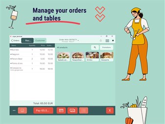 • Build your menu efficiently, with sections, categories, products and their variants. • Add images and descriptions to your products. • Simplified stock control. • Design your table plan for different areas of your restaurant. • Commanders • Possibility of using any device (computer, tablet, iPad, phone) • Quick collections, division of check by products, equal parts and partial payments. • Orders and payments at the table. • Promotions section and loyalty module. • Registry of frequent customers. • Send invoices and tickets by email. • Total sales reports, by categories, products, payment method. • Tax reports. • Own delivery management. • Personnel management (shift control)