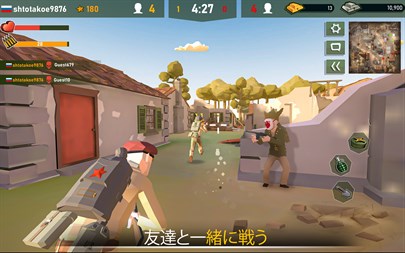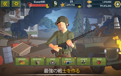 最高のオンラインシューティングゲームとして評判です。 これらのクールなゲームは、私たちのトップww2アクションと競合することはできません。 War Opsに無料で参加しましょう! ここに戦争があります。あなたの銃を持って行動する準備をしてください! 起きろ、兵士!さもなくば、昼間になる前に死んでしまうぞ。あなたは招集義務の呼び出しを聞きませんでしたか?軍の兵士または軍の狙撃兵を選択して、戦争ゾーンに飛び込みましょう。 今すぐバトルゲームに参加してください! War Opsは、果てしないアクションのプレイヤー対戦銃撃ゲームです! アクションゲームで好きなことすべて オンライン対戦または対戦チームで、あなたの兵士のために銃を選んで、無料で最高の楽しいゲームで戦闘を始めてください。 あなたの武器を選択 クールな銃のロックを解除して、究極の武器マスターになります。 あらゆる種類の銃を集める:最高の狙撃ライフル、ショットガン、またはピストルで、オンライン戦争ゲームであなたの力を解放しましょう! 銃を撃ち、戦争により多くのダメージを与えます。 戦争ゲームが大好きなことすべて。 兵士をグレードアップする War Opsでは、有名な戦争ゲームのキャラクターをアンロックしてアップグレードします。 あなたの戦士のスキンを変更し、あなたの健康、ダメージ、速度およびその他の特性を向上させる。 第二次世界大戦の戦場で最強になりましょう スキルと戦略を使用して、アクションゲームのラウンドで戦います。 このスリル満点の無料マルチプレイヤーシューティングゲームで、何百万人もの友達や敵と競争して戦いましょう。 FEATURES: IMPROVE YOUR SOLDIER DURING THE BATTLE! Try all equipment types for every occasion. Deal max damage to the enemy or to make your armor stronger? You can take everything you need with you or find bonuses directly on the map. PLAY MULTIPLAYER GAMES WITHOUT LIMITS! Feel the power of PvP battles online with players from all over the world. Challenge your skills in team battles on the WW2. Advance in rank your fighter, upgrade weapons, and armor to become the strongest army man! CHOOSE YOUR OWN GAME STYLE User-friendly controls which will be enjoyed both by newbie shooter players and hardcore gamers. Fight with friends in one team battle or destroy avalanche of enemies by your own in deathmatch mode. Be the best and stay on the top of the rating table in this modern online shooter! COMBAT MISSIONS AND PRIZES FOR ACHIEVEMENTS! Take part in various gaming tournaments, win prizes in the ratings! Use different types of weapons, select and combine upgrades! Show your superiority to the enemy. Get rewards not only for luck but also for gaming skills. PROTECT THE HONOR OF YOUR COUNTRY! Compete with players from the USA, China, Russia, Japan, Germany, and many other countries. Become the best! JOIN OUR OFFICIAL COMMUNITIES. Stay up to date with the latest news and updates! Take part in gaming tournaments, take first place in the ratings of the city, country, or even the whole world! Get all the rewards and share your achievements with your friends on Facebook, Vkontakte, Odnoklassniki, and so on. REQUIRES A PERMANENT INTERNET CONNECTION.