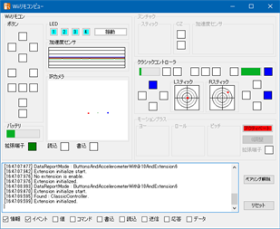 Wiiリモコンの動作を調べ不良品の簡単迅速な発見をサポートするソフトです。 Wiiリモコンの他、Wiiリモコンプラス、ヌンチャク、クラシックコントローラ、モーションプラスなど拡張コントローラの検査にも対応しています。