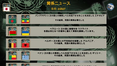 このゲームは、今日の出来事や国のステータスを表す非常にスマートな人工知能システムに対するシングルプレイヤーに基づいています。 私たちのチームは、経済、関係、軍の状況など、実際のデータに基づいて各国の状況を毎日収集および更新しています...