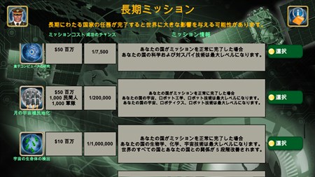 ゲームには以下が含まれます: 世界中からの武器供給業者、スパイセンター、作戦室、外交官、国連、経済システム、テクノロジー、世界ニュース配信(経済、関係、スパイ、戦争)、そして非常に高度な人工知能。