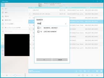・m3uとm3u8に拡張子を関連付けしているため、直にプレイリストを開ける (※1) ・ヘッドフォンを外すと再生が停止 (※2) ・誤タップ防止に、ダブルタップ再生機能。 ・プレイリストの並べ替えはドラッグアンドドロップやインデックス指定に対応。 ・項目を検索して削除できる機能。 ・次に再生したい曲を右クリックから指定できる再生予約機能。 ・歌詞の表示機能。再生時間に同期したオートスクロール機能。 ・最小化しても再生が続行する。 ・ライブラリに依存しないので、ライブラリ管理が煩わしいと感じている方に(※3) ・ありがちな縦長のUIゴシックを排除。 ・mp3, m4a, wma, wav, flacに対応 (ただしコーデックにも依存します) 。