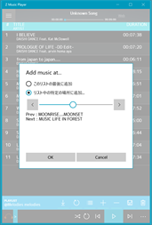Z Music Playerはライブラリよりもプレイリストから再生することの多いユーザ向けの音楽プレイヤーです。 音楽管理よりも、再生に特化したプレイヤーです。