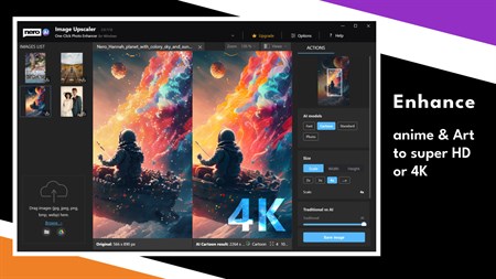 • 写真の品質を高める:SNS で共有されるイメージは通常、解像度が低く、圧縮されています。Nero AI Image Upscaler は、イメージをアップスケールしてサイズを拡大し、エクスペリエンスを向上させることができます。