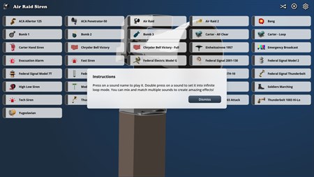 Air Raid Siren is an epic soundboard app featuring many high quality stereo sound effects from tornado and air raid sirens. Includes siren sounds from around the world! Prank your neighbors into thinking there is an incoming air raid! Tap on the sounds once to play a single time. Double tap on the sounds to play them in infinite loop mode! Also, play multiple sounds at once to make it sound like there is a full out war going on! Will the fun ever end? No. I am always looking to improve my apps, so if you have any suggestions please let me know and I will try to make an update ASAP. This app is for you guys!