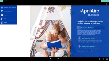 The AprilAire Pro App is the perfect digital tool to help contractors and builders sell, install, and service AprilAire Healthy Air solutions. The app is easy to use, with a simple log-in for your security. The AprilAire Pro App will automatically update with all of the latest literature and video content.