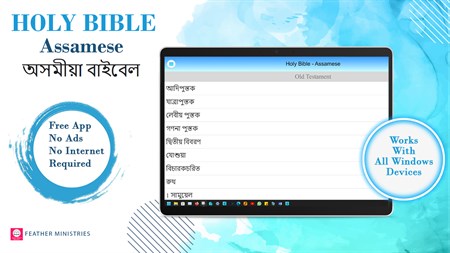 Simple and Friendly user interface Assamese Holy Bible, most importantly, it is free. For regular reading and references. Works Offline: All the Books, chapters and verses in Bible are stored on your windows device, so you will never need internet connection to study and read the Holy Bible. We are proud and happy to release the first version of Assamese Holy Bible in windows for free. This app contains both "Old Testament" and "New Testament". Our effort in bringing you bible in Indian languages. We sincerely hope that this app will rejoice you. Material provided in this app is proposed for educational and reference use. This content of the Assamese Bible is made available under a Creative Commons Attribution-Share Alike 4.0 International License. Original work HTML download from public domains.