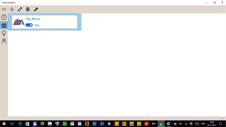 Work with the application: Open the Rooms menu. Add the room with the connection settings to Arduino. Activate connection with the Arduino by pressing the power switch to the on position to turn on the room. Add Arduino connected sensors and devices by specifying the connector types, pin numbers and so on.
