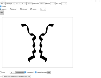 Using InkCanvas. PenTip rotate. PenTip size change. Symmetry graphic. Rotate graphic.