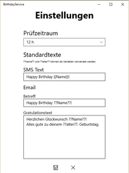 - 2x times check / day for birthday entries in your contacts - integrated phone call / SMS / email functionality - full customizable message entries - shows the age of the person - checks all your contacts in your Win10 contact app - sorts all contacts for next birthday