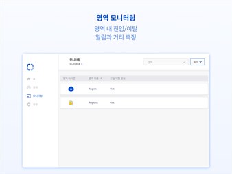 영역 모니터링 - BuildThing Beacon이 등록된 영역 내 진입/이탈 여부를 알 수 있습니다. - 영역에 속한 BuildThing Beacon들과의 거리를 알 수 있습니다.