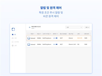 게이트웨이 관리 - 주변 BuildThing Gateway를 스캔할 수 있습니다. - BuildThing Gateway에 연결하고 값을 설정할 수 있습니다. - BuildThing Cloud에서 게이트웨이 정보를 모니터링 할 수 있습니다.