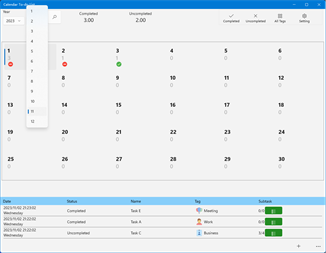 Key features: Custom category tags. You can modify the task status directly in the list. Each task can be associated with multiple subtasks. Count the number of subtasks associated with each task. Count the number of each task. The list of unfinished and completed tasks is displayed independently. Tasks that have already been completed can be changed to incomplete. You can delete tasks that have been completed in each month with one click. You can switch the language to use.