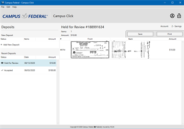 Campus Click Remote Deposit allows you to make multi-check deposits to your business checking and savings accounts.