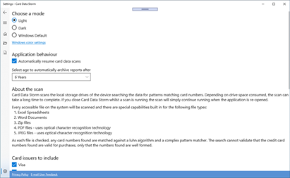 Card Data Storm is a PCI DSS tool which scans the local storage drives of the device searching the data for patterns matching payment card numbers.