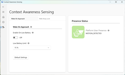 Context Awareness Sensing Application for WoA and WAL is a human presence detection application supporting WoA (Wake on Approach) and WAL (Walk Away Lock). This application is designed for ToF and W-Fi Proximity sensing technologies.