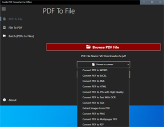 PDF to DOCX PDF to DOC PDF to XLSX PDF to TXT PDF to HTML PDF to XPS, PDF to RTF PDF to PNG PDF to JPG