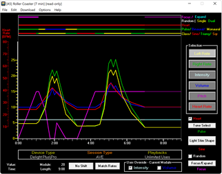 The DAVID Session Editor is graphics software that allows you to design custom sessions for the following DAVID and CES devices: Delight, Delight Plus, Delight Pro, ALERT, ALERT Pro and OASIS Pro.