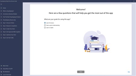 The app provides a set of tools to support your journey: * In-app notebook to work on your practical exercise, niche searching, track your progress, customized ideas, and successes. * In-app goal setting questionnaire. * In-app scheduling system to help you be consistent and complete the journey. * News Feed - Stay updated with new thoughts, ideas, tools, and tips with the live news feed feature. * Audio Music player with study focus music. * High end lessons and useful calculators.