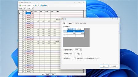 「勤務時間取得ツール」は、Windowsのイベントログ情報をもとに、おおよその出勤、退勤、実働、残業時間を表示します。 表示したデータは、CSV、XML、Excelファイルに保存することもできます。