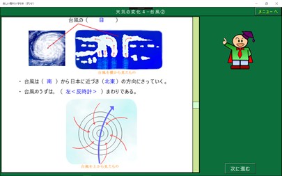 小学校5年で学習する理科のソフトです。たくさんのイラストで楽しく学習できます。学習指導要領にもとづいています。