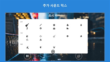 -55 개 이상의 완벽하게 반복되는 빗소리 -다른 응용 프로그램과 함께 응용 프로그램을 사용하는 기능 -애플리케이션 자동 종료 타이머