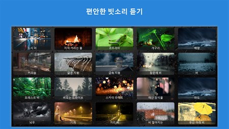 편안한 비 소리의 가장 큰 컬렉션입니다. 완전한 휴식 상태에 도달하기 위해 55 개가 넘는 비가 울립니다.
