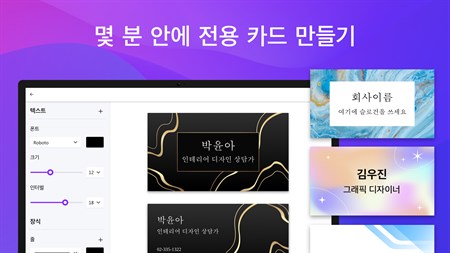 ๋น์ ์ ๋์์ธ ์ปค์คํฐ๋ง์ด์ฆ - ๋ธ๋๋์ ๋ง๊ฒ ๊ธ๊ผด ์คํ์ผ๊ณผ ์์ ๋ณ๊ฒฝ - ์นด๋๋ฅผ ์ค, ์์ด์ฝ ๋ฑ์ผ๋ก ์ฅ์ - ์ ์ ํ ํ์ ์ ํ - JPEG ๋๋ PNG๋ก ์ ์ฅ