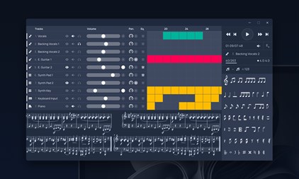 Create your own professional scores for one or several instruments and capture your notes quickly with the numerical Pad, the mouse, or even a MIDI instrument.