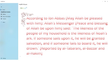 Hadith Mosaic by Ap4ilflower is a free windows application, for education use. It’s aim is to display beautiful saying (Hadiths) of the Holy Prophet (Peace and blessing of Allah be upon him), in a simple and easy way.