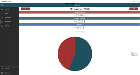 This application allows user to manage its expenses and incomes.