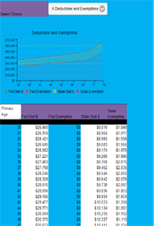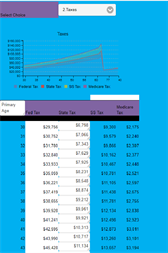 The Income and Tax Planner application is a sophisticated calculator that takes into account your income, retirement income, and the tax code to project your year to year income and taxes. Taxes take into account taxable income, taxable social security income, investment income and child tax credits calculating your federal tax, state tax, and social security/medicare tax. The tool has a nice graphical output and tables to show details on income and tax summary, taxes, effective tax rates (state and federal), income, filing status, deductions and exemptions and tax credits. The tool gives you the ability to modify your plan, year by year, as needed to custom a plan specific for your life situation. A very nice, handy, income and tax calculator.