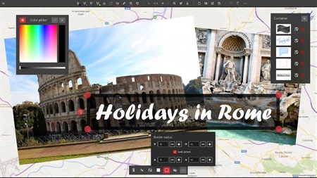 SHOW YOUR WORK: - Save your creation to PNG, JPG, JPEG, BMP, TIFF, GIF. - Share your masterpiece to Twitter, Facebook, E-Mail, ... it depends on what apps you have installed. - Presentation mode: slideshow with automatic playing.