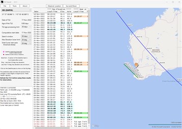 Computes the time of fly-overs of the International Space Station (ISS) and Chinese Space Station (CSS) at an observers location.