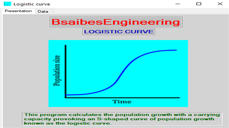 This program calculates the population growth with a carrying capacity provoking an S-shaped curve of population growth known as the logistic curve.