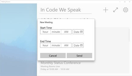 Note: It is highly recommended this app be used on a touch-screen device mounted outside a meeting-room