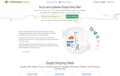 Create Sitemaps, RSS, Product Feeds, and Podcasts with a few clicks. MySitemapGenerator is a set of web apps to helps you with SEO, digital marketing, online sales, and web publishing.