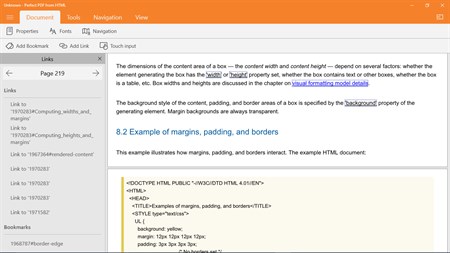 Perfect PDF from HTML is a simple, fast and powerful application for converting HTML content into PDF files. The application can import the structure of HTML files (including hyperlinks), not only a single HTML file; from the Internet or a local storage. It supports cascade style sheets (with restrictions), embedded fonts, raster and SVG images. Javascript, forms and objects are not supported at the moment. The product is focused on the import of static documentation, not on the import of dynamic or of rich media content.
