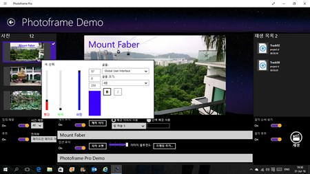 당신의 사진에서 아름 다운 슬라이드쇼를 만들고 그들을 당신의 친구와 가족과 공유 합니다. 좋아하는 음악을 슬라이드쇼에 추가, 각 이미지에 제목 및 다른 크기 및 색깔의 자막 추가. 다른 전환 및 제한 시간에서 선택 합니다. 에 내장 된 배경 중 하나를 선택 하거나 당신의 자신의 배경을 추가할 수 있습니다. 이미지 향상 위해 30 다른 사진 프레임에서 선택 하십시오. 슬라이드 하나에 의해 재생할 수 있습니다 또는 무작위로. 음악 플레이어에 셔플, 루프, 뒤로/앞으로 볼륨 및 밸런스 설정을 수 있습니다. 응용 프로그램에서 직접 새로운 사진의 찍을 하 고 수동으로 그들을 통해 보내주시면 대신 아름 다운 슬라이드쇼로 그들을 당신의 친구와 공유. 응용 프로그램에서 찍은 모든 사진은 사진 라이브러리에도 저장 됩니다. 귀하의 이미지 라이브러리에서 직접 슬라이드쇼를 만듭니다. 라이브러리에 추가 된 이미지는 슬라이드쇼에 자동으로 추가 됩니다. 모든 외부 드라이브를 완전 한 슬라이드쇼를 저장 하 고 당신의 친구와 함께 그것을 공유. 슬라이드쇼를 자동으로 중지 하려면 절전 타이머를 설정 합니다. 좋아하는 그림과 노래와 함께 아침에 일어나 알람 시계를 설정 합니다.