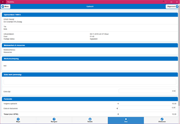 Facturatie Voorkom dubbele administratie en bespaar tijd door de facturatie te koppelen aan de uitgevoerde werkzaamheden. Binnen enkele stappen is de pdf factuur per e-mail verzonden. Btw-verlegd & G-rekening is volledig ondersteund voor de Nederlandse en Belgische regelgevingen. Kernpunten van het facturatie systeem: - Digitale factuur versturen in PDF-formaat. - Verzamelfacturatie van uitgevoerde opdrachten. - Per opdracht/object te factureren bedragen registreren. - BTW Verlegd & G-Rekening zijn ondersteund. - Factureren aan eindklant of naar een andere relatie (opdrachtgever).