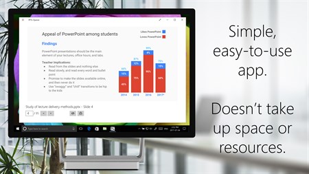 This app was designed for speed and simplicity. It will open presentation files in no time, and let you print, share, and present them. There are no in-app purchases or functionality locks.