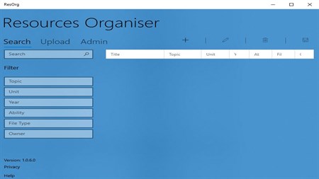 ResOrg is a resources organiser that allows multiple users to organise, structure and share resources. This can be used in environments like schools, or any organisation where there is a need to share mutliple resources created and stored within a local or network file storage system.