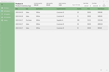 Retail Business Inventory App - Easily record the change of your product inventory quantity, count the quantity and amount of product purchase and sales, and manage the orders of different suppliers and customers.