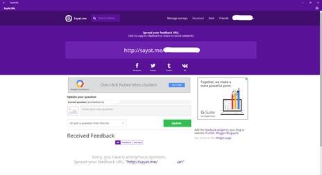 Sayat.me is a free service which enables you to gather sincere and honest feedback from people you know or give feedback to others.
