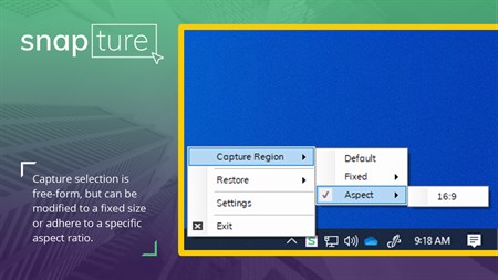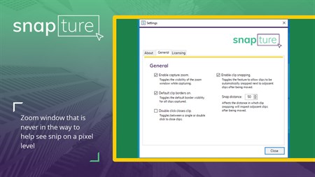 Snapture is a lightweight, yet versatile snipping tool. With Snapture you can create layered screen snaps. Easily compare content and changes by using Snapture’s “always on top” feature. Ideal for the creative professional, Snapture is the perfect tool for web designers, graphic artists, and even software developers. With this tool you can copy parts of your screen to your computer’s clipboard or save directly to a file. The greatest part is that Snapture is simple and easy to use for everyone!