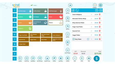 Spiral POS software is designed for hospitality, retail and entertainment industries. It is an end to end to solution with an online booking or ordering website and integrates seamlessly with a backend and a touch enabled POS terminal.