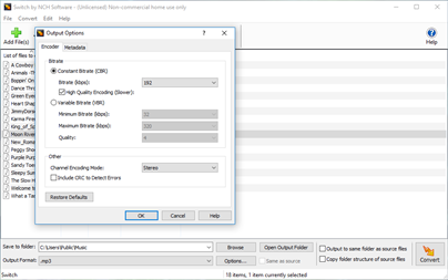 Switch Audio Converter is a fast and user-friendly way to convert almost any audio file. Just import the files you want, select the new format, and then click the convert button. Switch will then convert your audio file from over 40 file types into the format you need, including popular audio formats such as mp3, wav, or wma files.