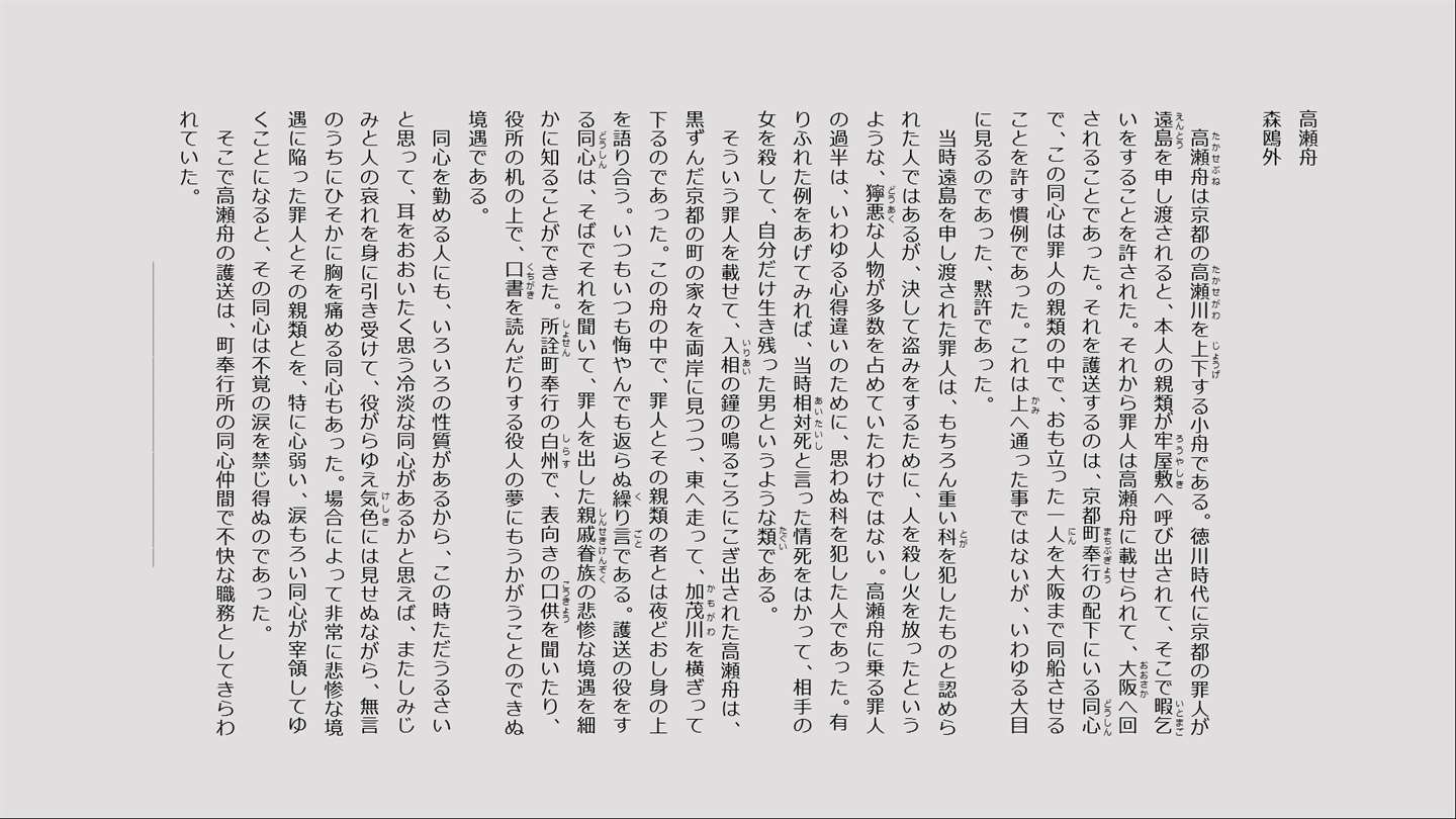 About 森鴎外 高瀬舟 (縦書ãã€é’空文庫より)