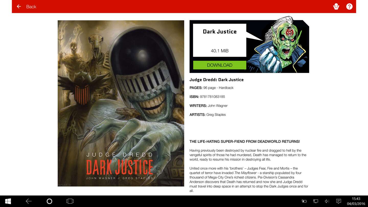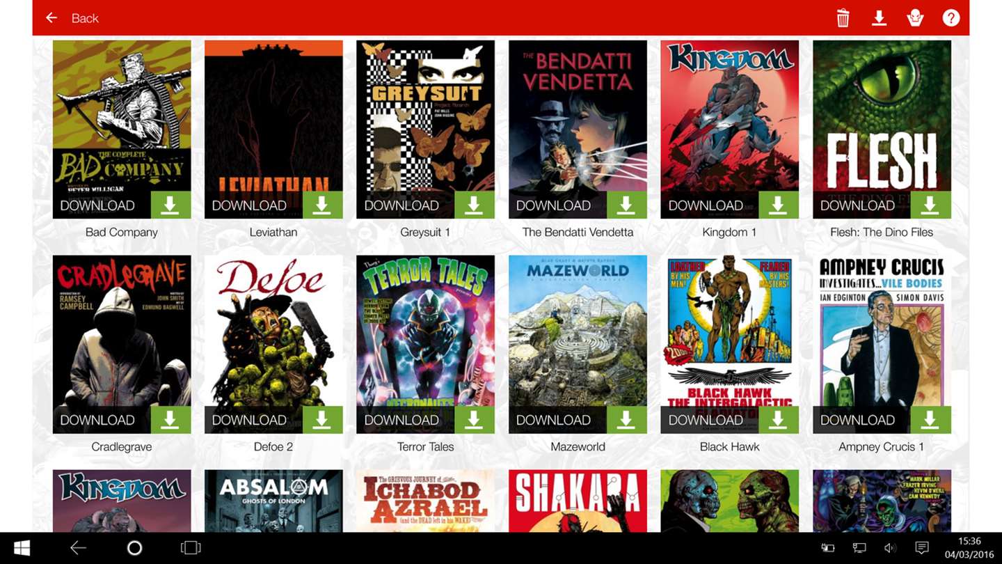 A good start. Nice layout. Fantastic that there is free content. Negatives. 1) Ok, setting up an account is understandable, but why can't you just use the Microsoft Account that I already have? i.e. oAuth? 2) Popping out the actual comic into a PDF viewer is a shame, can't we have it natively in the client? Then you could also try to remember last page viewed etc. Keep up good work! :)