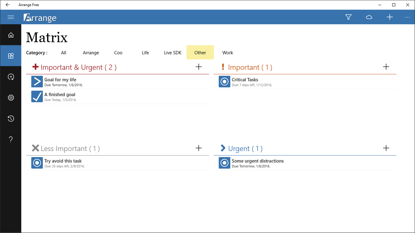 I liked the layout and its easy to find specific task. So far I haven't noticed any bugs. It will be excellent if a calendar and to-do-list side-by-side as a floating tab on the right side. Now it can add to events in outlook calendar.